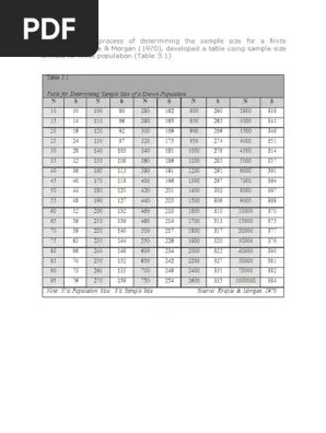 Krejcie and morgan (1970) table of determining sample size as 152. Determining sample size for research. Compress a pdf file with free or professional tools It also highlights the significance of using cohen's formula over krejcie and morgan's for higher accuracy to base decisions on research findings with . Model for data, and provide a simple sample size calculation formula. This formula is the one used by krejcie & morgan in their 1970 article "determining sample size for. Krejcie morgan sample size table margin of error accuracy and precision. But with 80% expected response rate the sample size is 190. Of these tables estimate a base sample size; To address the existing gap, krejcie & morgan (1970) came up with a table for determining sample size for a given population for easy .